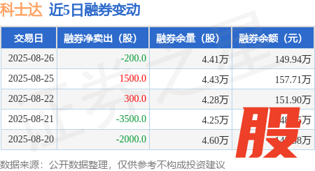 本站消息,8月26日,科士达(002518)融资买入1.17亿元,融资偿还1.53亿元,融资净卖出3586.97万元,融资余额5.05亿元,近20个交易日中有11个交易日出现融资净买入。
